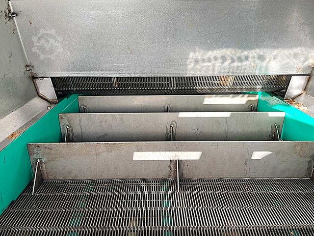 Två identiska bandfritöser från Göztepe för grönsaker (lök, potatis, nötter etc.) finns tillgängliga. Arbetslängd: 6800 mm, arbetsbredd: 700 mm, inmatningshöjd: 1280 mm, utmatningshöjd: 1060 mm, arbetstemperatur: 180°C. Längd och bredd på det undre plastbandet: 14000 mm/720 mm, längd och bredd på det övre plastbandet: 8500 mm/720 mm. Maskindimensioner (LxBxH): ca 6900 mm/1800 mm/3500 mm, total effekt: 135 kW. Dokumentation finns tillgänglig. Besiktning på plats är möjlig.