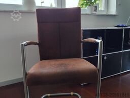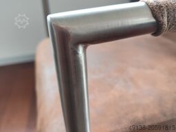 Elegant cantileversits med stilren, borstad rostfri stålram och mjuk mikrofiberklädsel i varmbrunt. Mycket robust, även lämplig för tyngre personer. Bra kombination av modern design och komfort. Angivet pris avser alla (6 stycken).